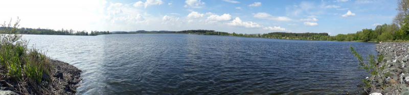 Wir ließen unseren Blick rundum schweifen über das Fichtelgebirge, Thüringen und bis zum Erzgebirge. Dann traten wir den Rückweg an. Auch dieser führte uns auf zum Teil abenteuerlichen Wegen unserem Ausgangspunkt entgegen. Die Sonne stand hoch am Himmel und jeder lechzte nach einer Erfrischung. Gut das an der Förmitztalsperre der Eiswagen auf uns wartete. Einmal Schoko-Vanille bitte und was die anderen so wollten. Wir genossen genüsslich am Ufer unser Eis, hörten den Wellen zu und schauten auf das sich spiegelnde Wasser. Nun hieß es aber auch noch die letzten Kilometer zum Startpunkt in Angriff zu nehmen.